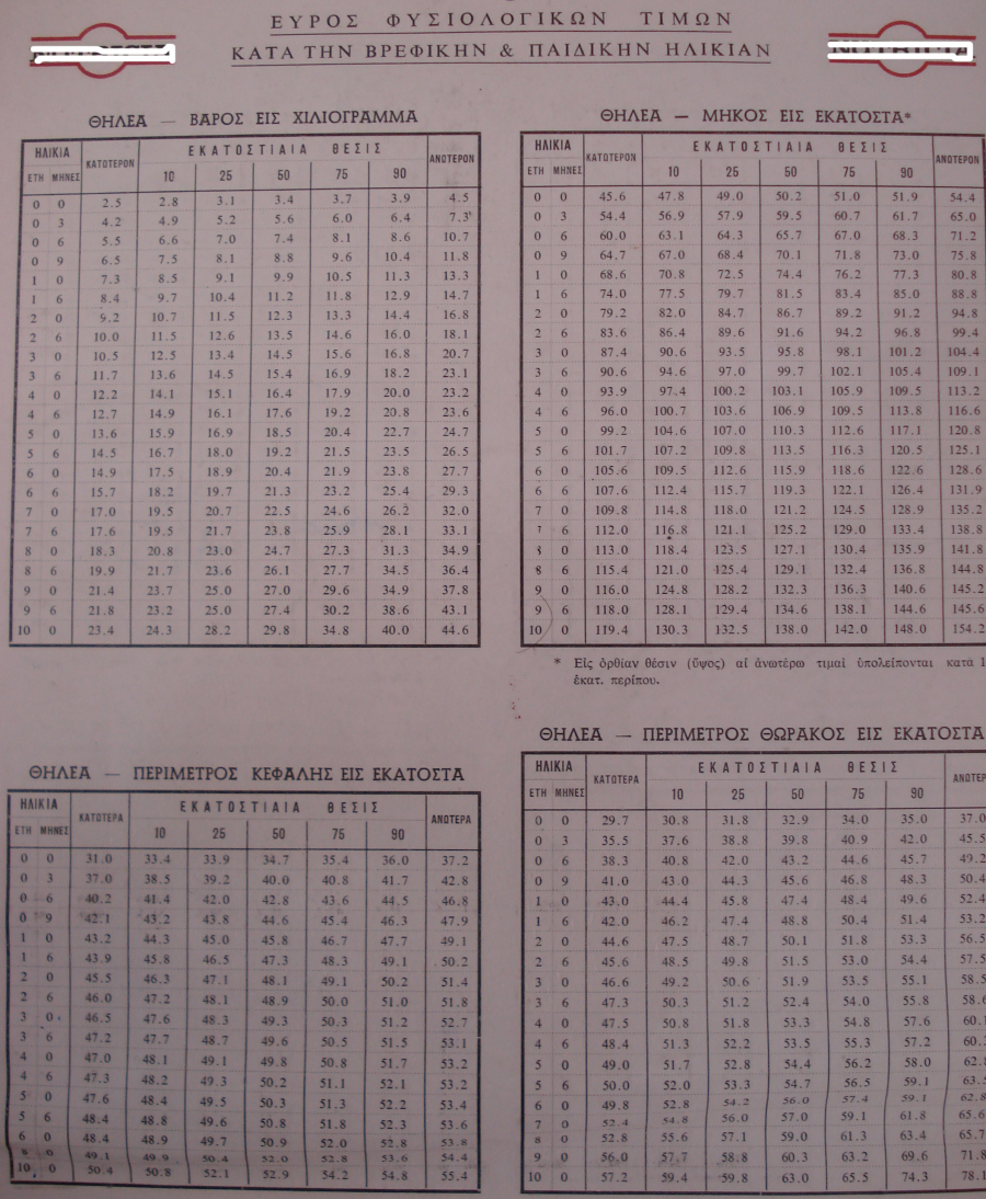 Οι πίνακες αυτοί, αντικαταστήθηκαν απο τις καμπύλες ανάπτυξης που βασίστηκαν στον Ελληνικό πληθυσμό και είναι ενσωματωμένες σε όλα τα βιβλιάρια υγείας.